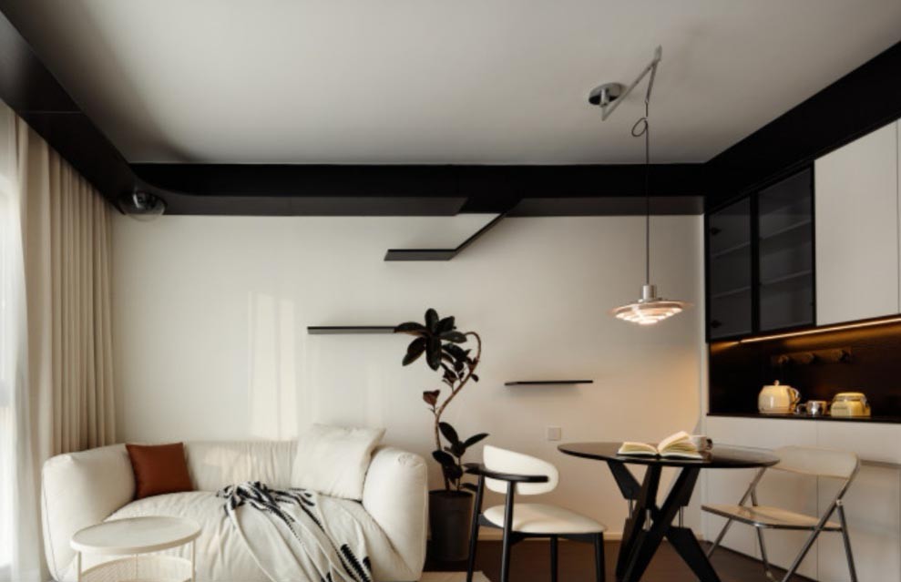从这个角度看,卫生间干区与客餐厅之间的过渡非常自然,实现了完美融合,没有任何违和感。