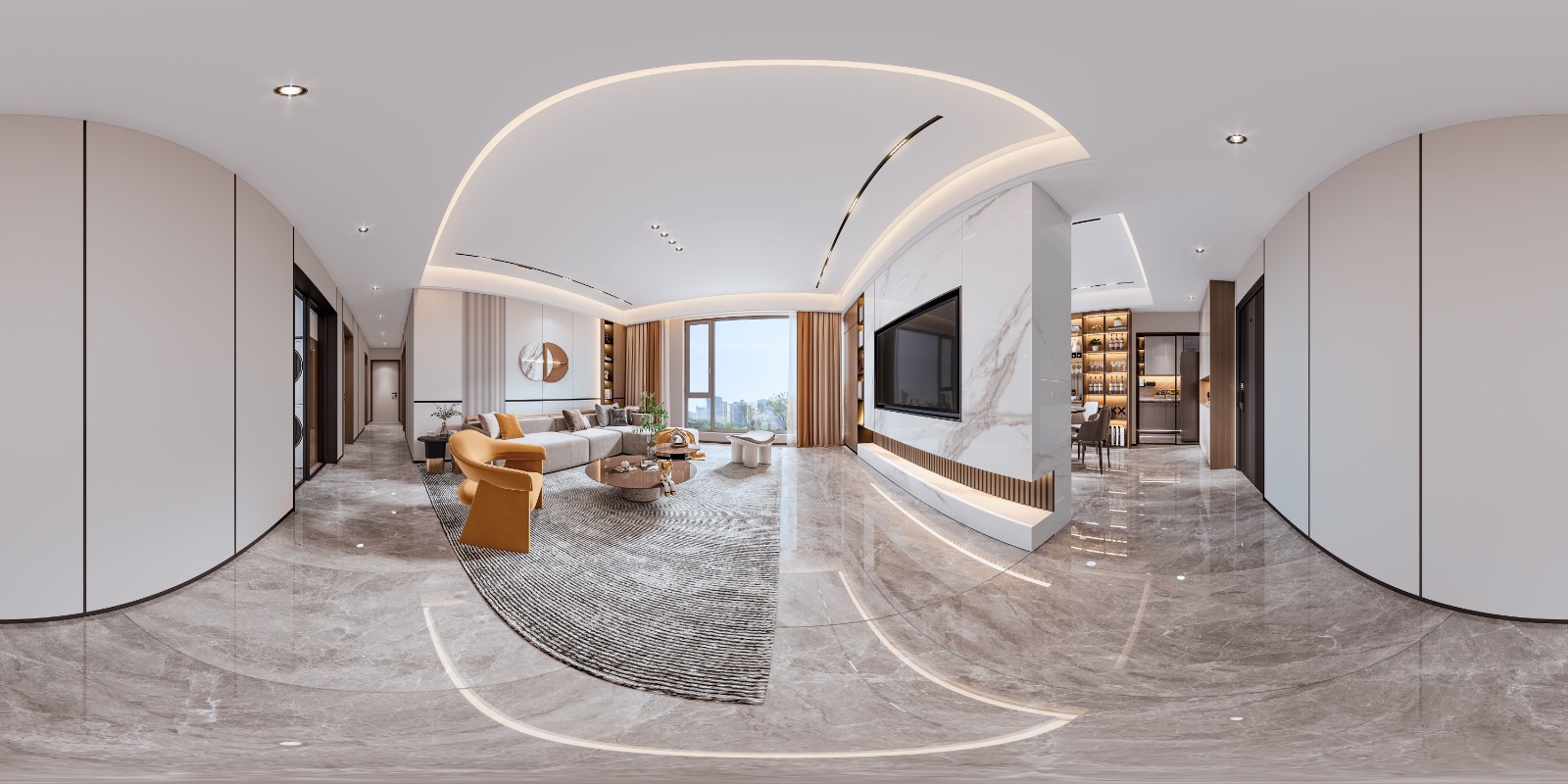 现代风格的客厅,给人一种简洁明快而又不失时尚大气的感觉,宽敞的空间中,线条简洁流畅,色彩搭配和谐且富有层次感。天花无主灯设计洒下柔和而明亮的光线。地面铺设优质灰色地砖,增添了一份温润与舒适。