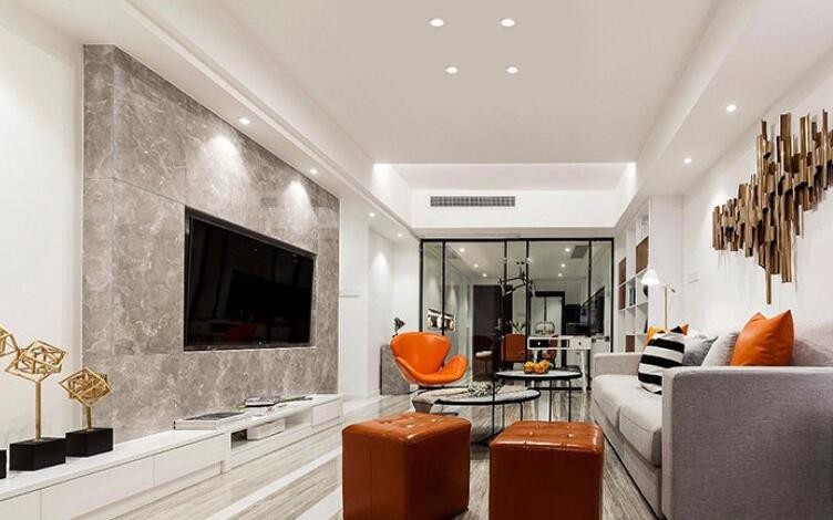 在这个空间角度,看到整面电视背景墙,液晶电视的摆放,从中打破空间的格局,更加时尚,简约,局部的点光源,突出空间的主次之分,采用中央空调,合理利用每个空间。