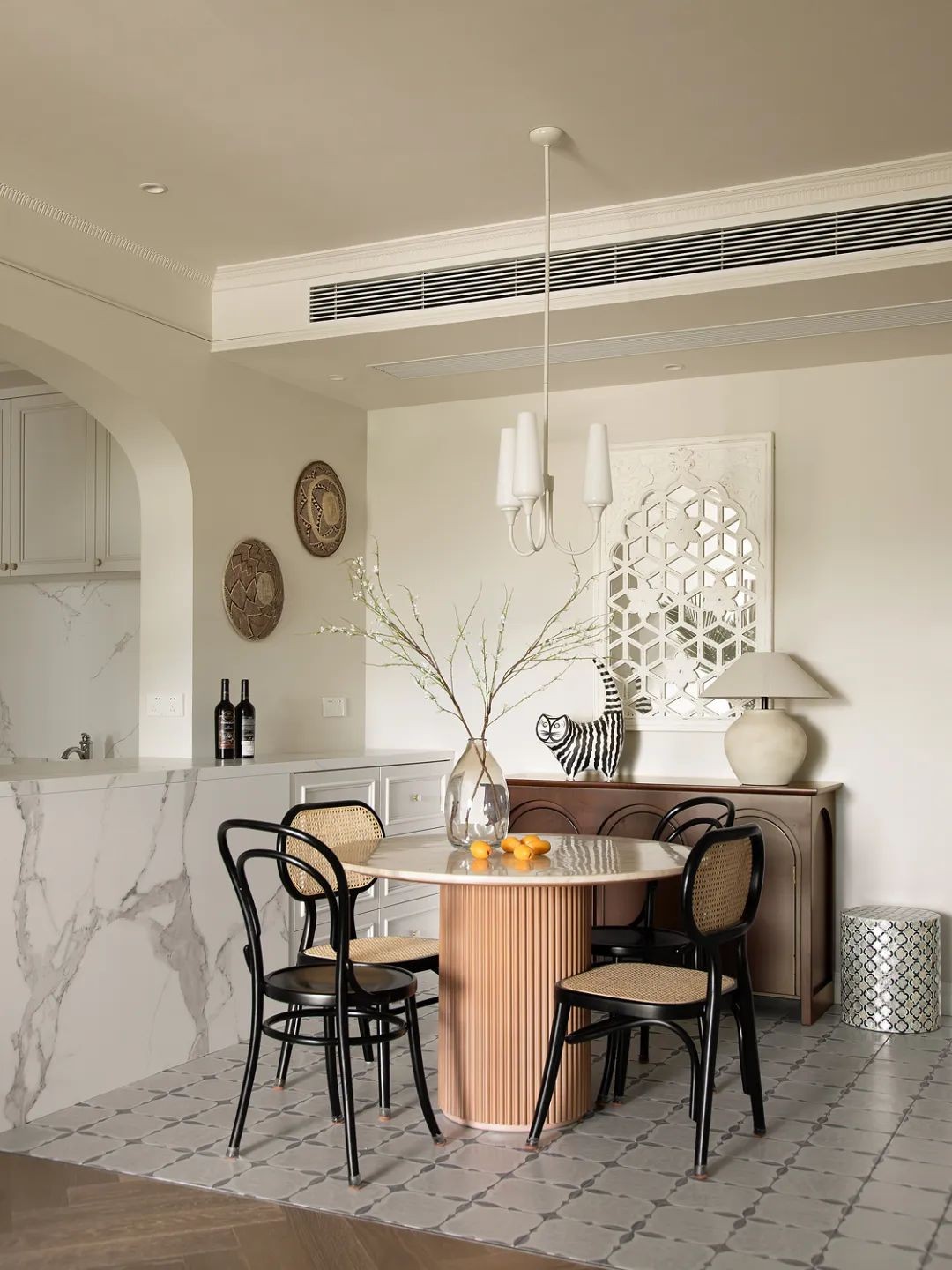 吧台与拱门构出优雅的生活氛围, 仿蜡烛吊灯衬托法式风格的精致感, 美得像一幅画,令人沉醉。
