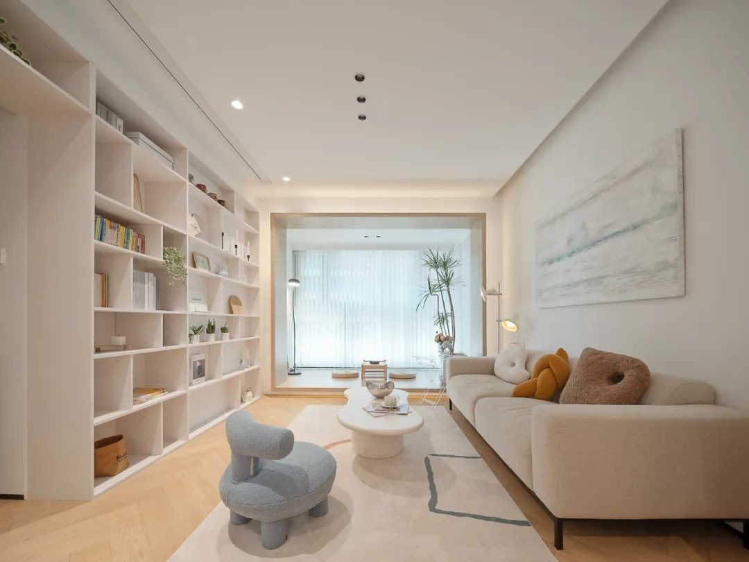 LDK一体化设计, 让不同空间相互联动, 形成生活型的社交空间, 视觉感受也十足的通透, 干净整洁的大面积白色, 与木质的温润烘托出温馨氛围,