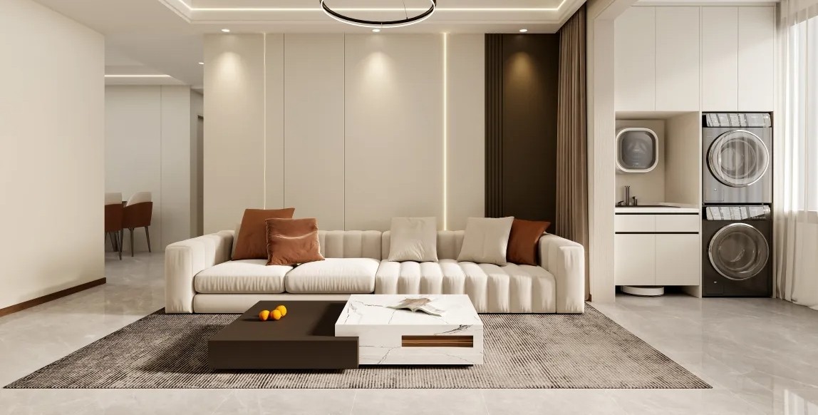 在客厅的装饰上,可以添加一些艺术品、照片墙、绿植等元素,以增加空间的美感和个性化。同时,也要注意保持空间的整洁和舒适度,避免过于拥挤或杂乱无章。