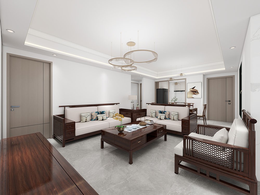 现代中式典雅,布局和谐,古朴家具彰显文化底蕴。