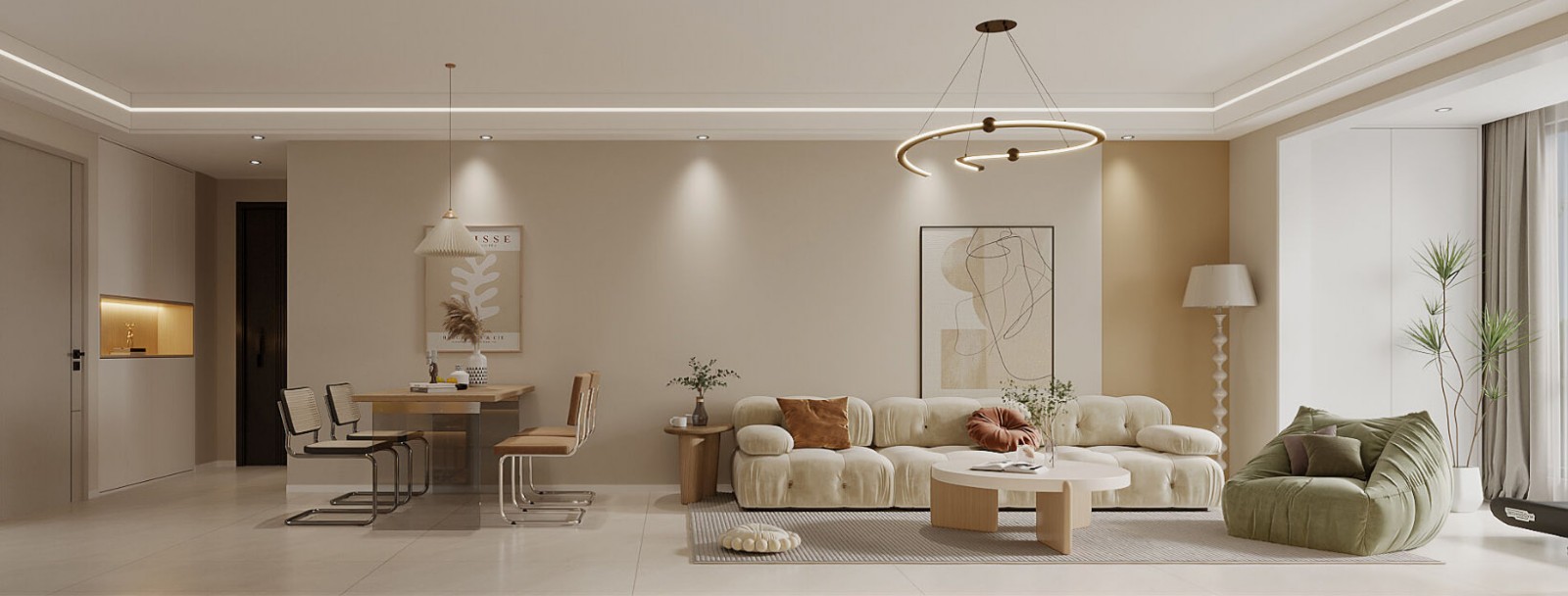 三室两厅两卫的户型结构,六口之家,整理设计采用了原木奶油风,温馨舒适。