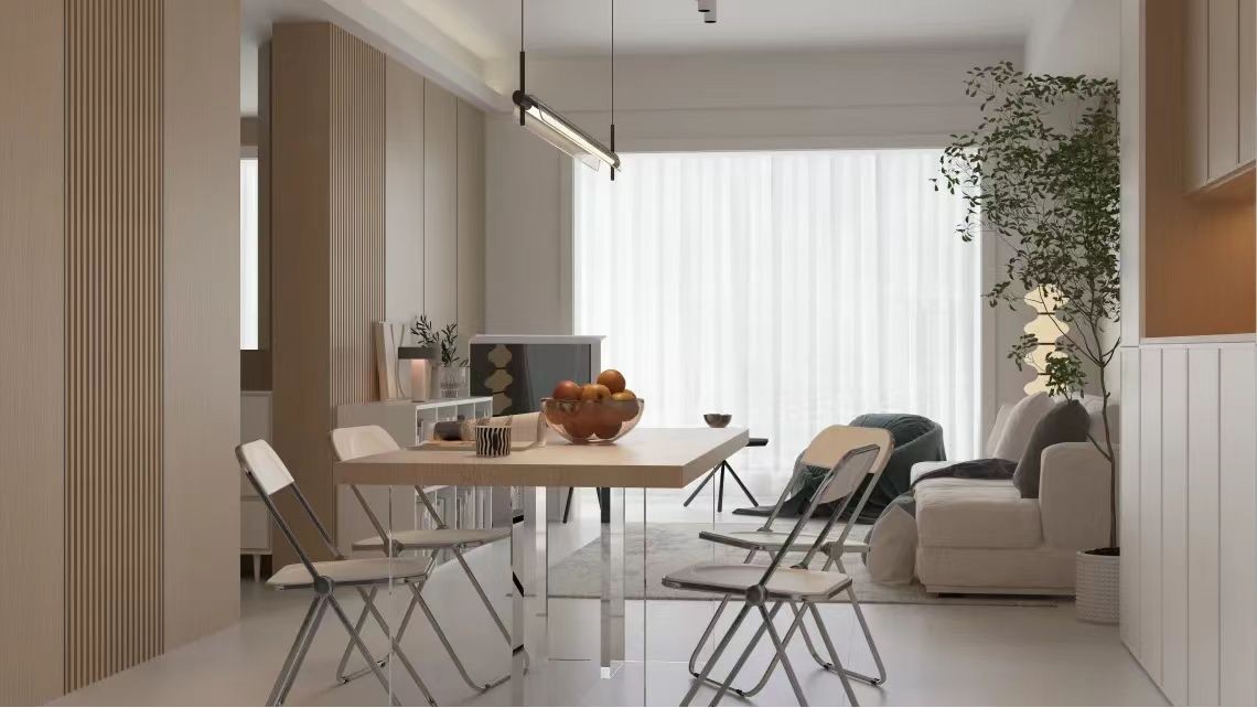 整体空间以木地板的地面基础,而天花墙面则是以净白的乳胶漆为主,呈现出一种干净自然的空间感;布置上简约舒适的家具软装,使得居住空间充满惬意从容的舒适感。