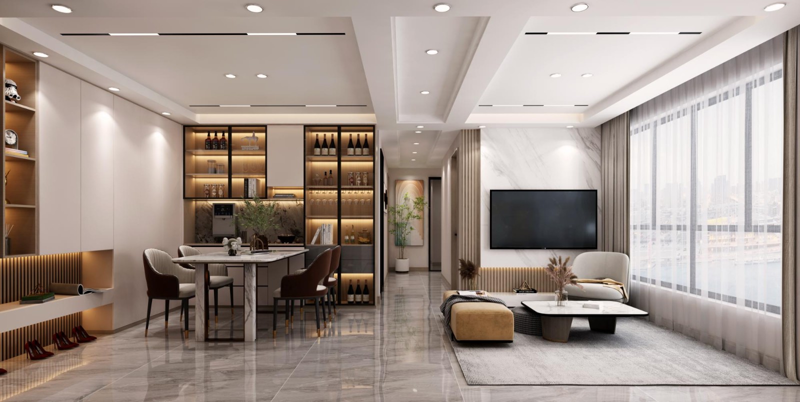 在客餐厅效果图中选择高质量的家具是打造优雅客厅的关键。选择舒适且实用的沙发,它将是你的“窝心之处”。同时,搭配一些实用的家具,如电视柜、书架和储物柜,让你的客厅井井有条。