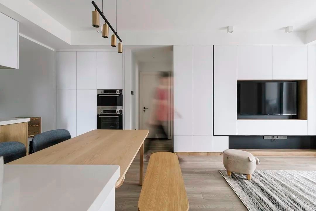 整个客厅采用无主灯设计,用白色筒灯补充各个区域的照明,增加整体空间的通透感。