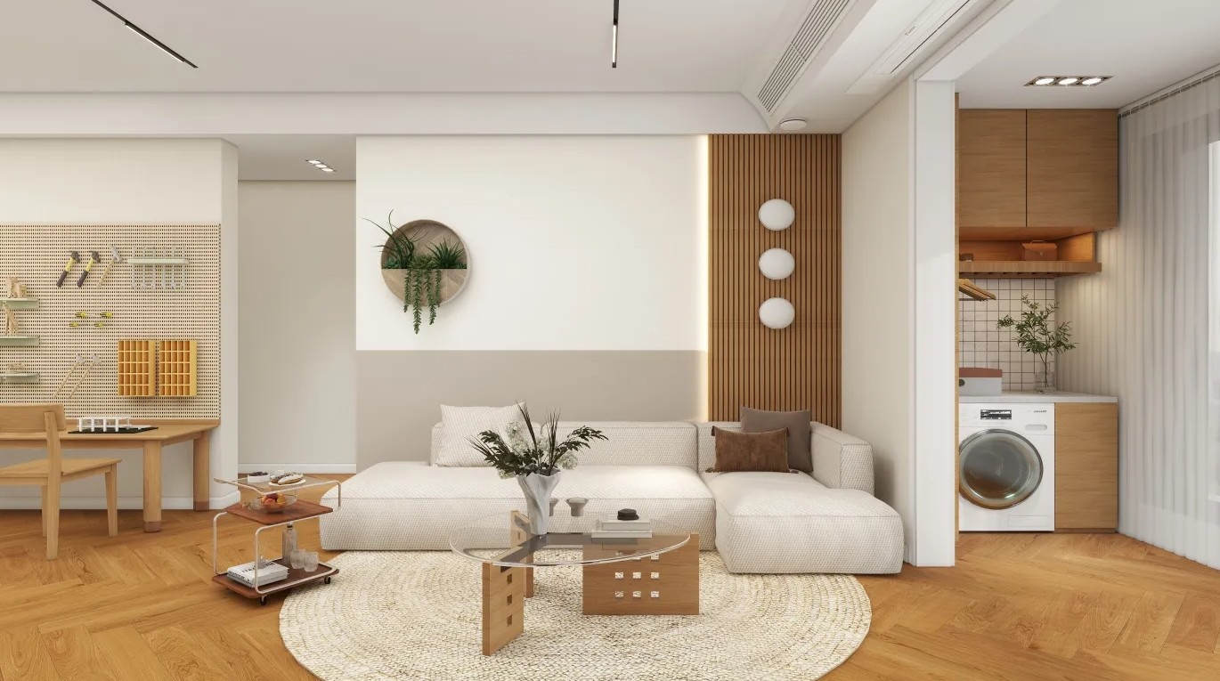 原木色,来自自然之物所赋予的温润之色。100㎡三房两厅原木风设计。