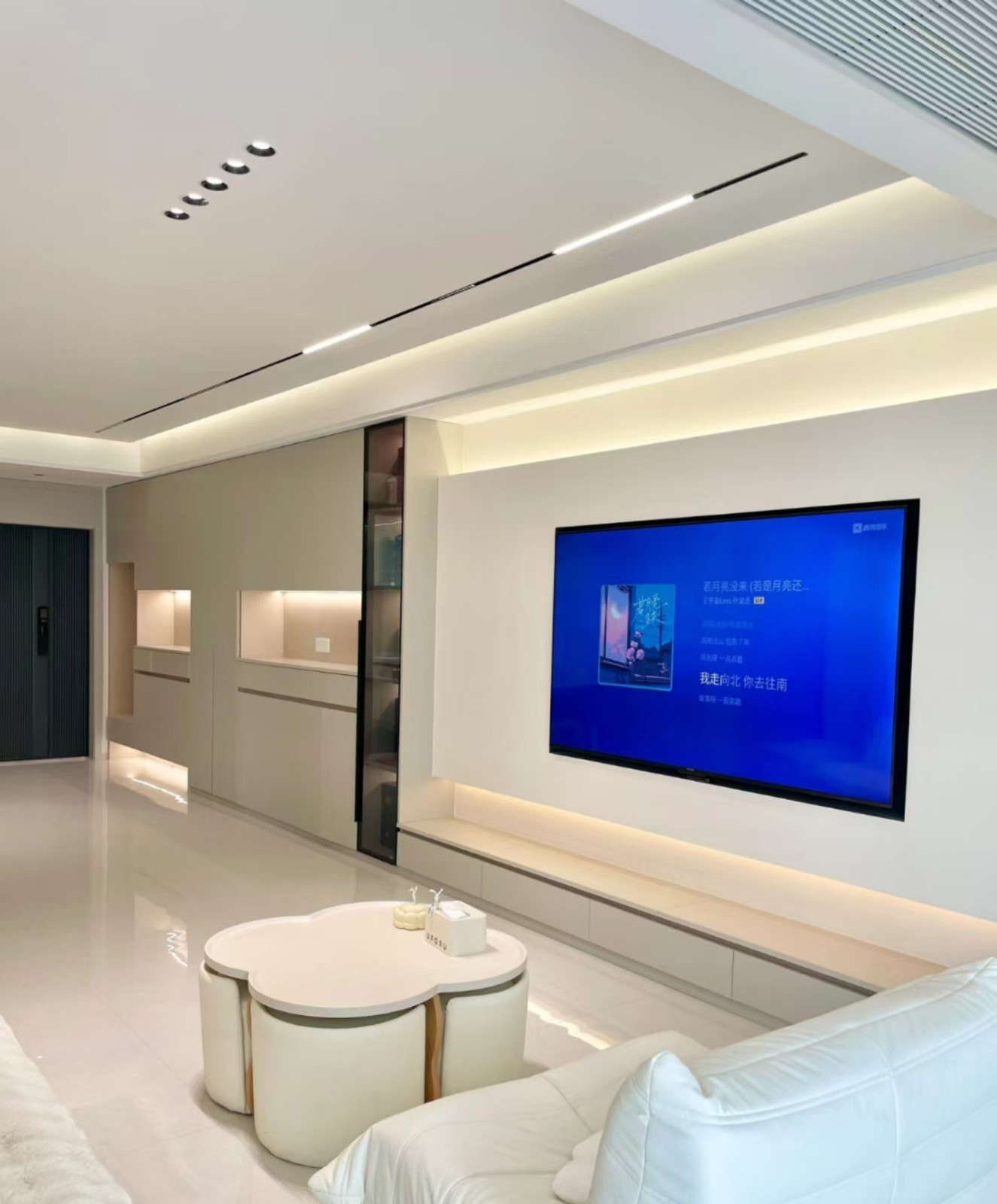 柜子采用见光板,嵌入墙体,合理利用空间,顶面无复杂吊顶。