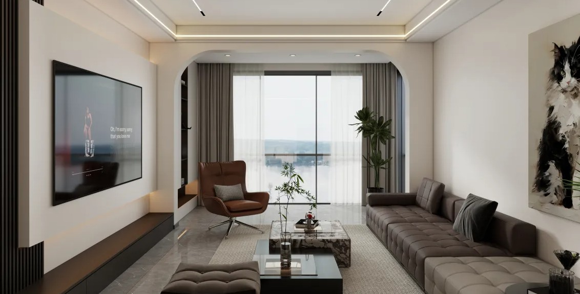 黑白灰色调搭配,线条简洁流畅,营造出宽敞明亮的空间感,适合现代都市生活。