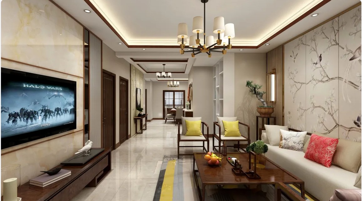 新中式雅致,古典家具与现代元素融合,温婉色调,营造温馨舒适氛围。