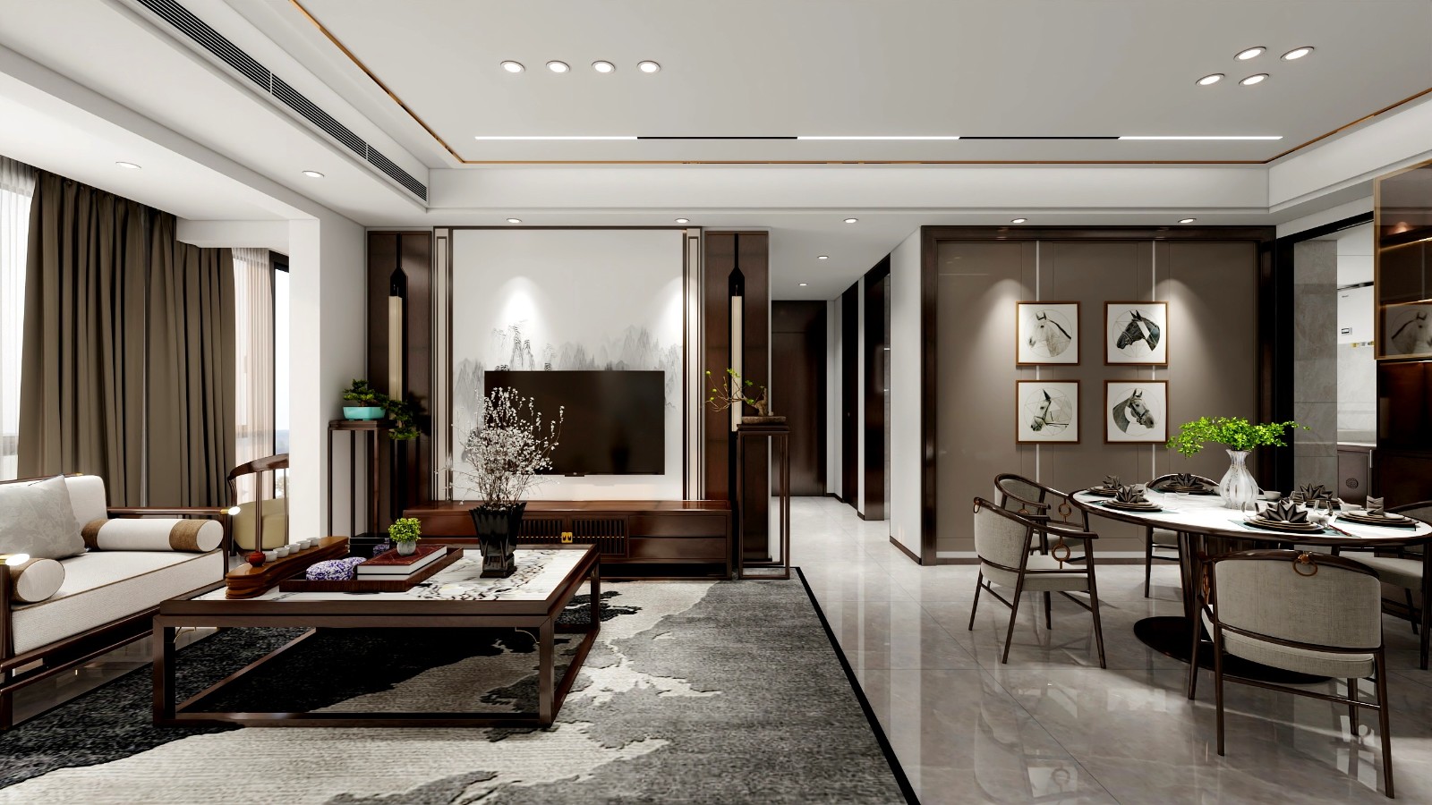 材质选用:新中式风格注重材质的自然性和高质量,常使用红木、大理石、水晶、玻璃等高档材料,与天然的石材、木材、布艺相融合,营造出一种高雅、尊贵的气息。同时,也注重手工制作和传统工艺的运用,展现中式文化的传统魅力。