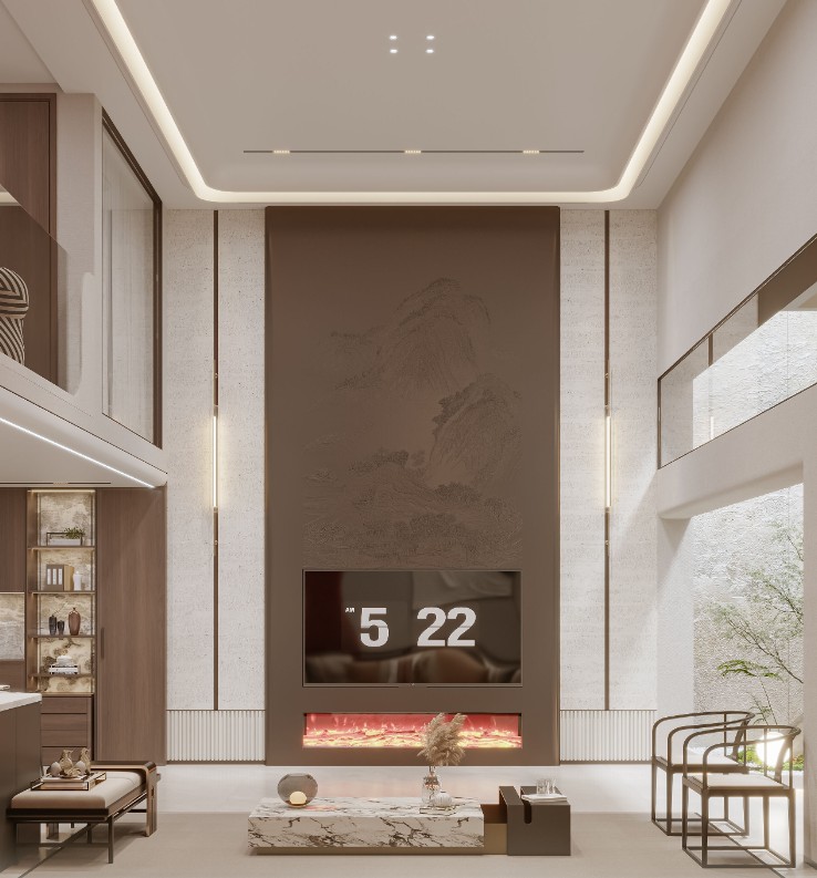 业主喜欢一些中古风带现代中式的元素两种结合,稳重中带有茶艺气息,二楼的玻璃透光过来,也代表生活处处是阳光普照,生活多姿多彩。