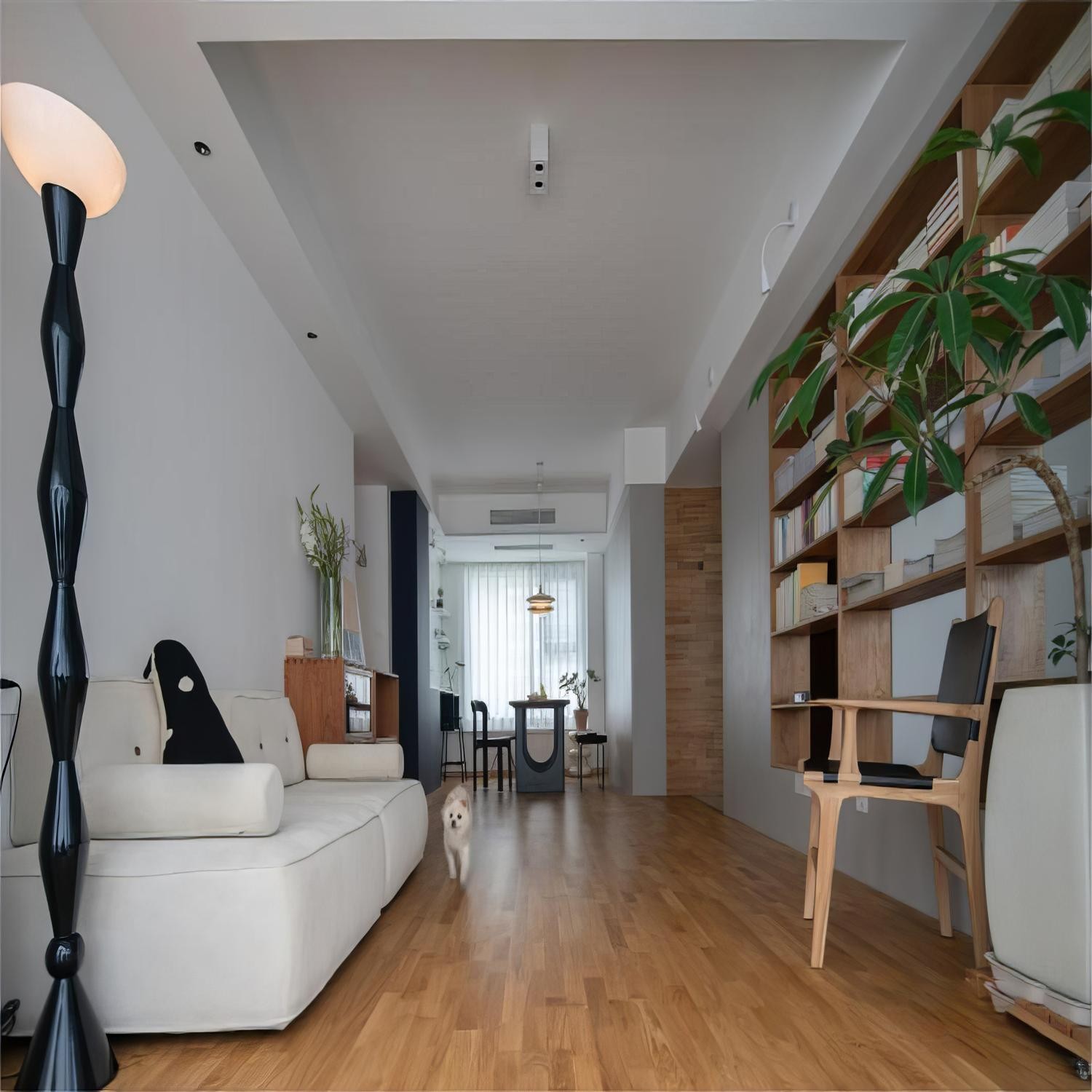 大面积留白的客厅,新换的实木三层的地板,方便小朋友和狗子的随意翻滚。 对于屋主来说,房子里拥有大量的书籍和绿植鲜花后,就真正有了家的感觉,可以开展生活啦。