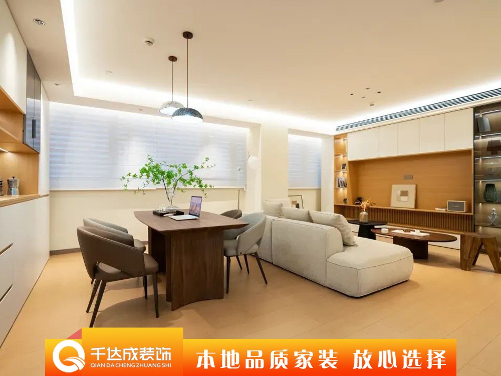 整个客餐厅采用一体开放式布局,没有明显的隔断,小户型更显空间,整个客餐厅采用原木+奶油白配色,温润和煦,给空间满满的治愈感