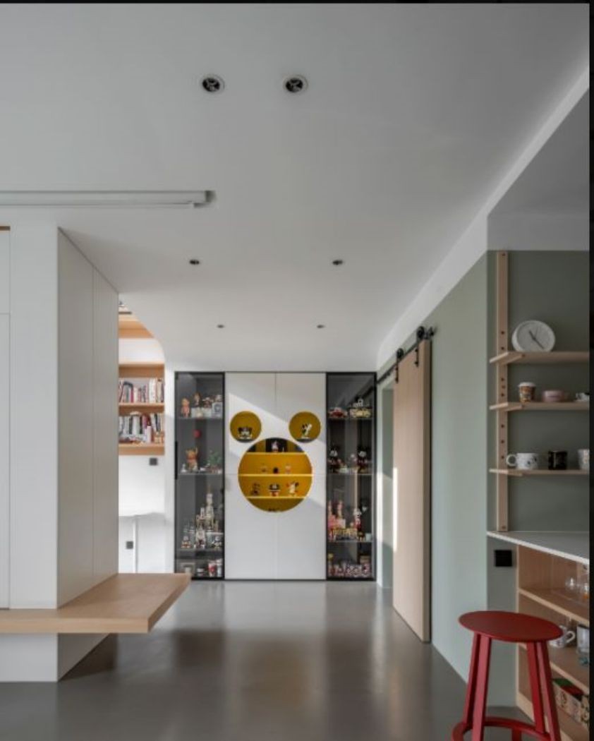 屋主是一个米奇控,委托要求是打造一个有原木和色彩的极简空间,米奇元素可以有但不要完全以其为主题进行设计。原始空间是一个小跃层,设计需要平面和空间同时规划,由于这个属性我们把工作重点放在了硬装和结构上。把屋主的各种公仔和乐高视作“家人”一样规划专属“房间”,让整个空间作为定制的“礼物盒”送给~羁绊