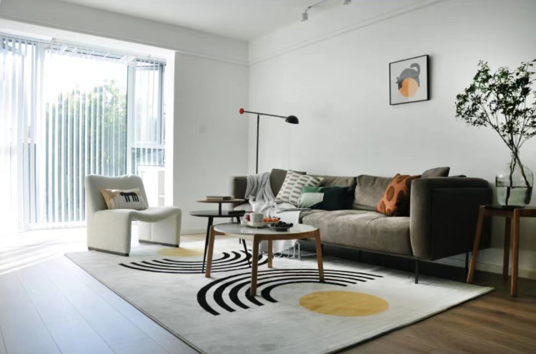 沙发一侧的一些小细节,4人沙发+单人休闲椅需要2个高低错落的茶几来承接,才有松弛感,对得起19平米的大客厅,就84平米的中户型而言,客厅面积真的是超大超舒服