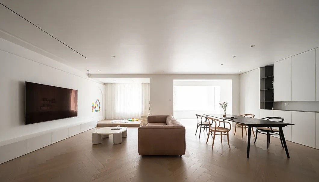 客餐厅一体化设计带来开阔感觉,节省的空间利于孩子活动。