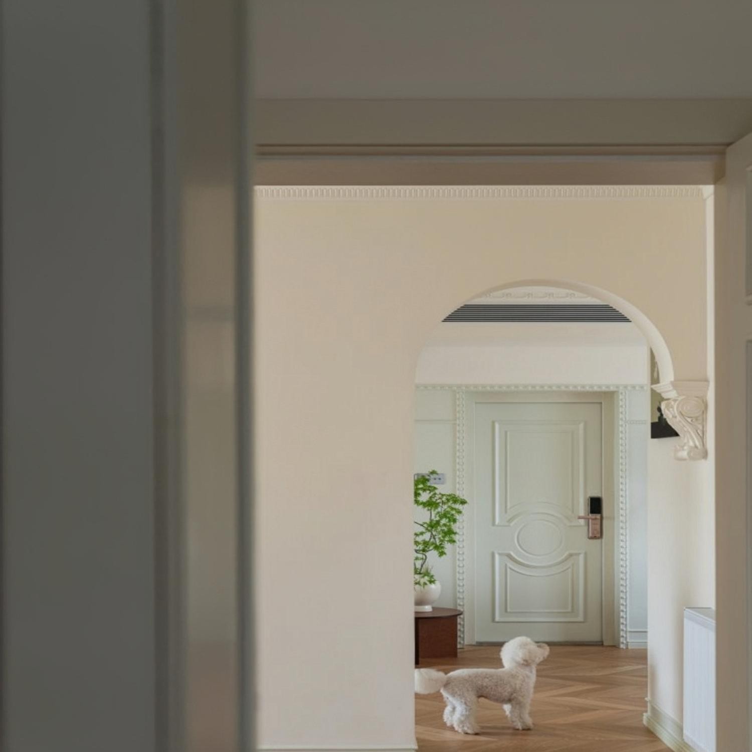 一道拱门从放松的客厅走向沉稳的书房,拱门左侧以雕像代替门框,无形塑造有形,打造更精致、开阔的视觉体验。