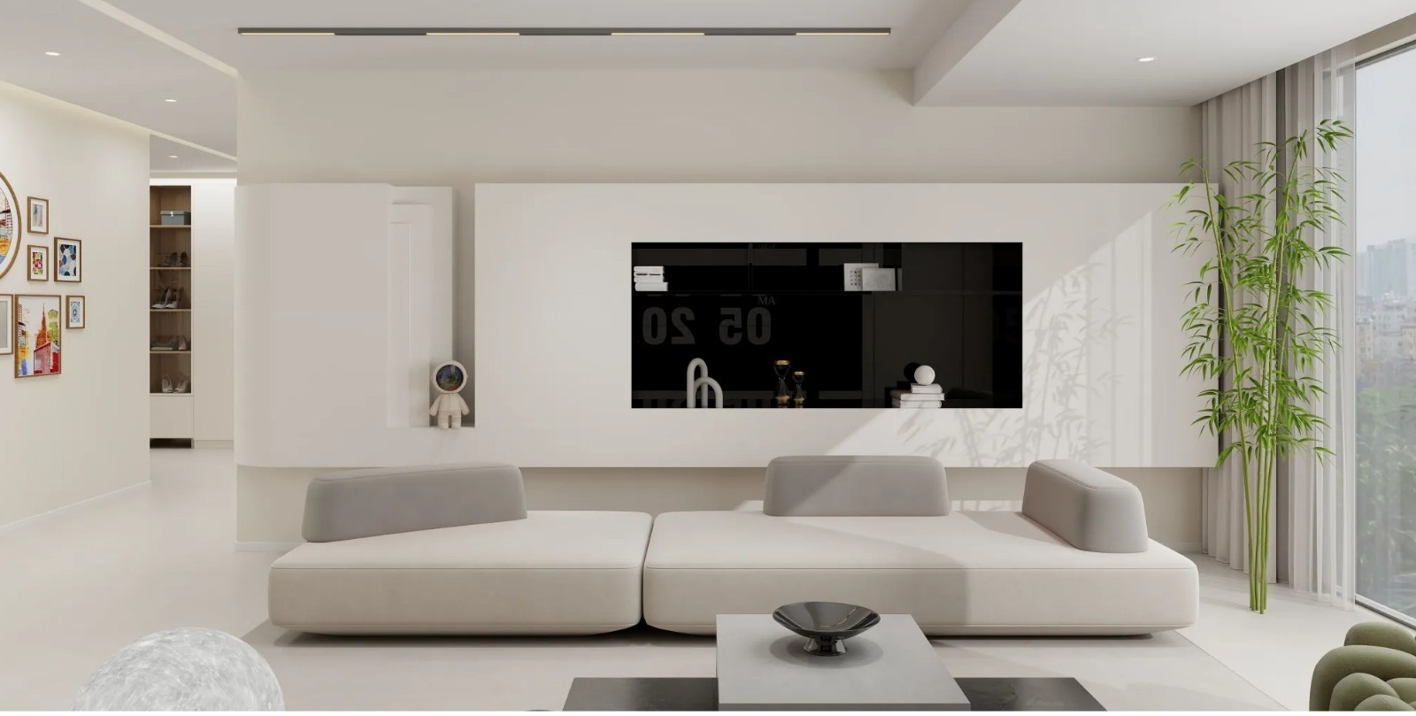 现代简约风格的客厅设计注重空间感与通透性,家具选择简洁而功能性强的款式,避免过多的装饰。色彩上以中性色为主,如白色、灰色或米色,营造出明亮、宽敞的氛围。