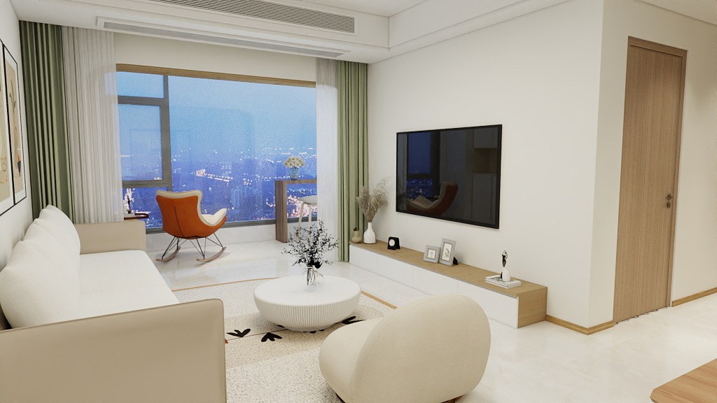 家具以原色为主,白色为辅,墙面满刷浅色乳胶漆