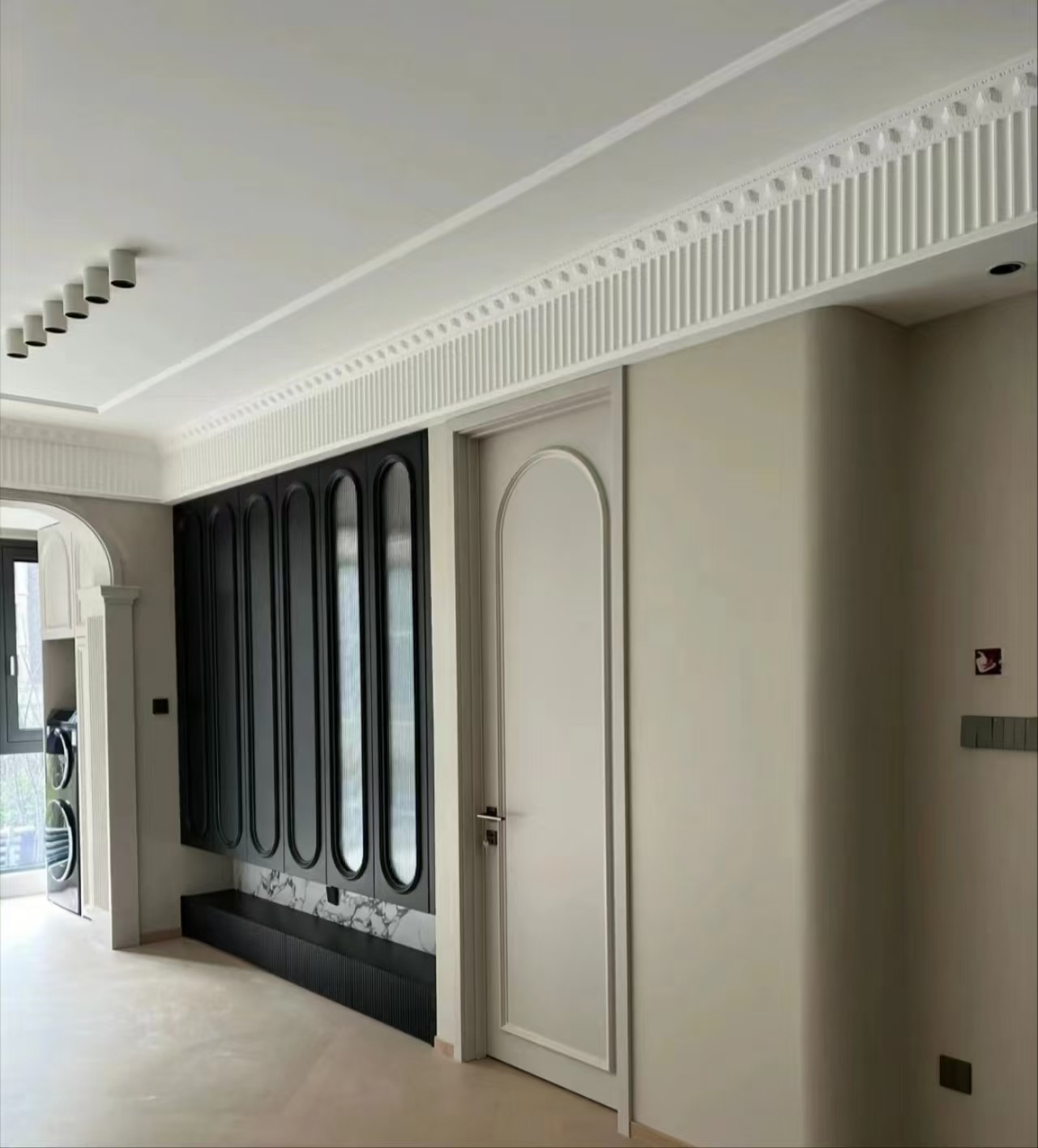 餐边柜及圆弧的收口柱子再加上大理石纹