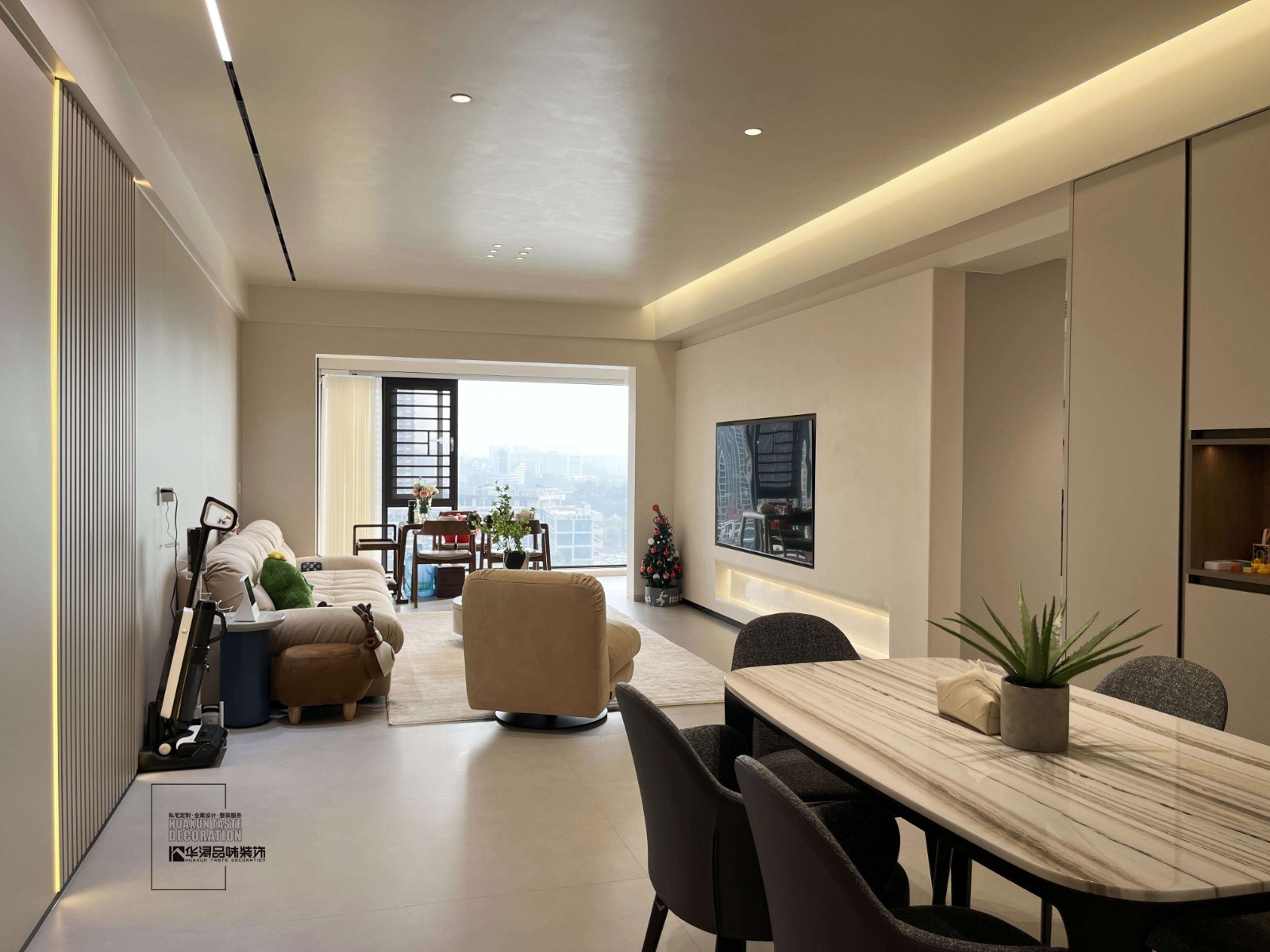 本案整体以简约开放为核心理念,打破空间之间的间隙,让不同功能空间相融合,打造出1+1大于2的感觉,使空间更具灵动性。打通6米阳台封窗,从而营造出一个舒适的空间感。墙体艺术漆做底色,搭配同色系的护墙板及柜体,柔和的肌理感给人带来温润的视觉感受。灯光采用无主灯的方式来呈现氛围感,地面通铺柔光砖,***柔和温暖了整个家。