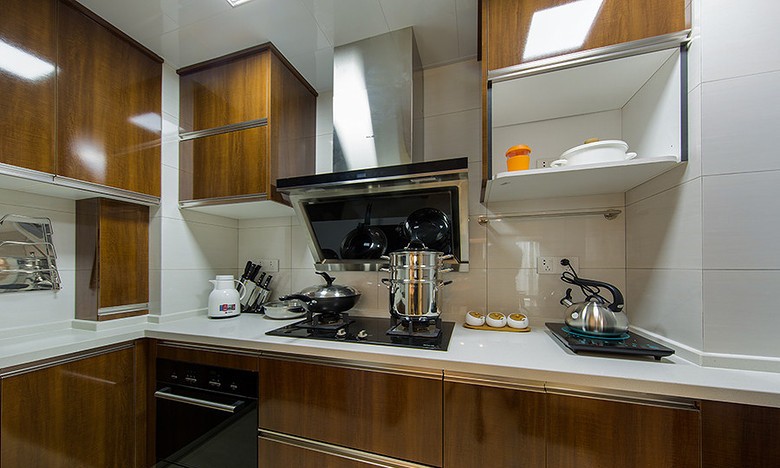 女主人要求要耐脏,所以橱柜设计了实木色