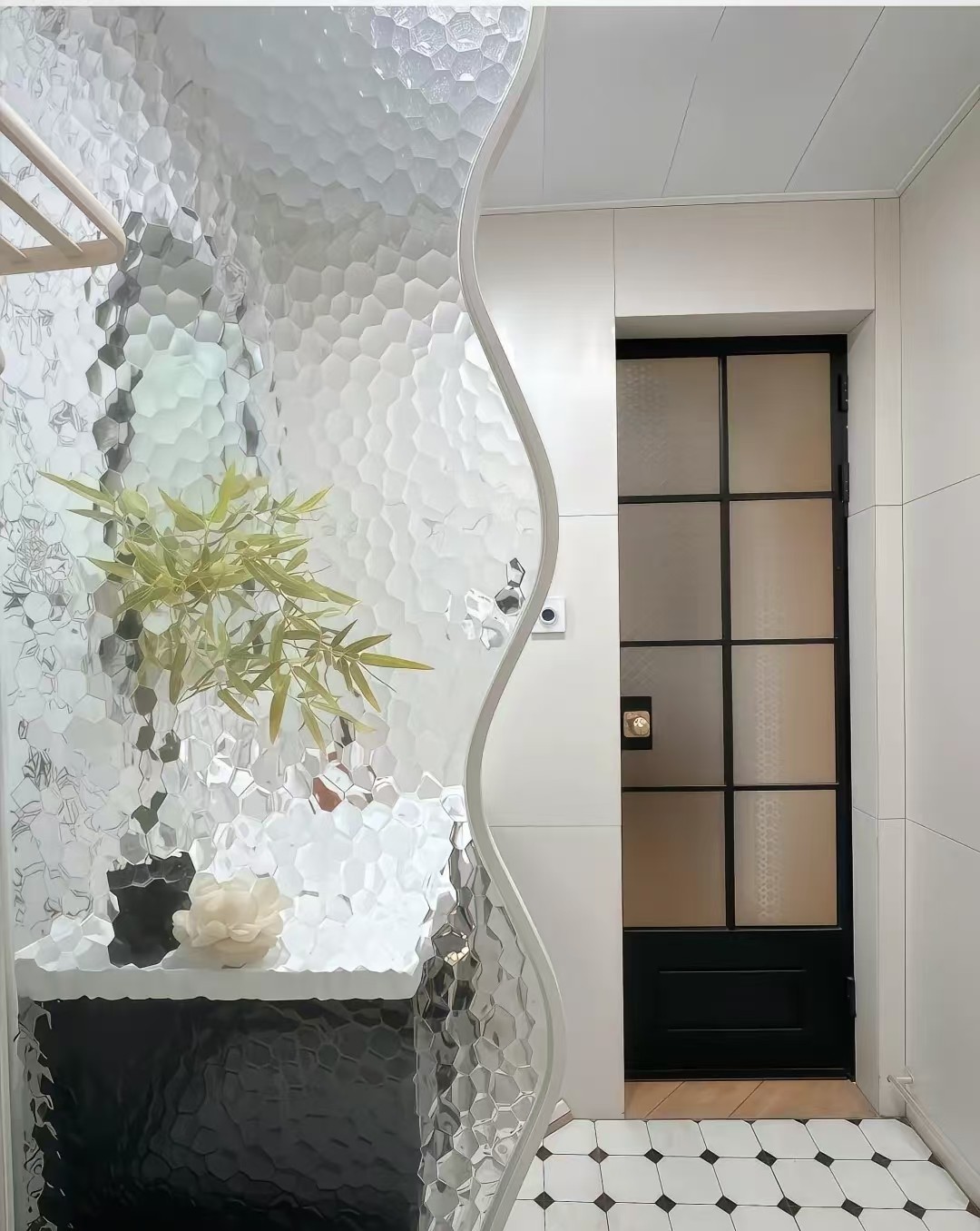 玻璃隔墙点缀绿植,让空间更灵动
