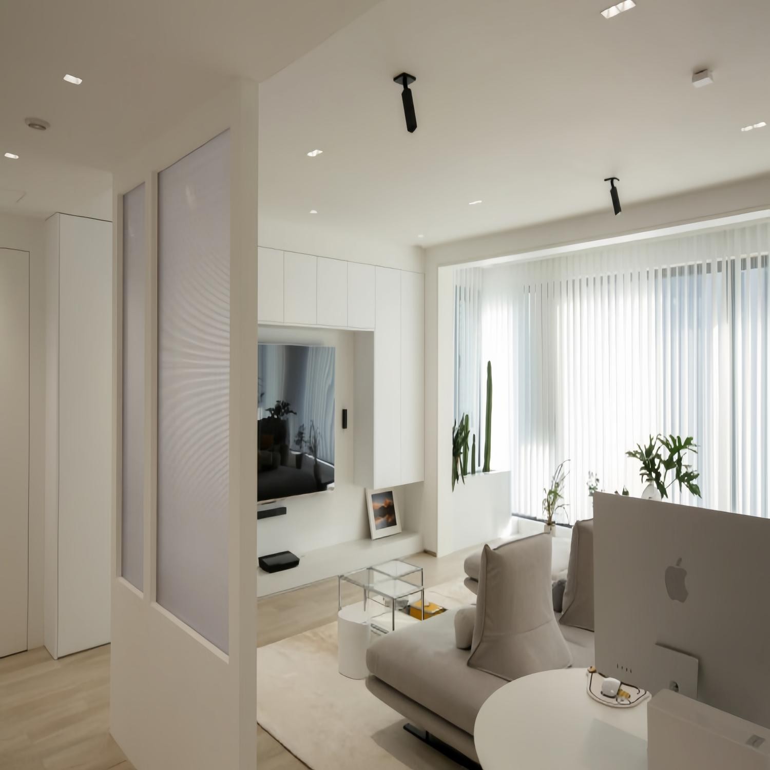 从走廊隔着隔断望向客厅