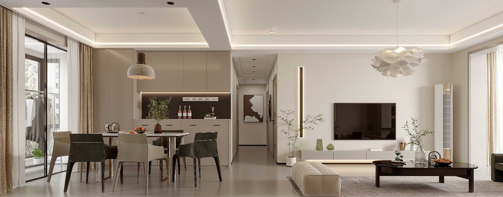 肤感的柜体,加强了整体空间的温馨感
