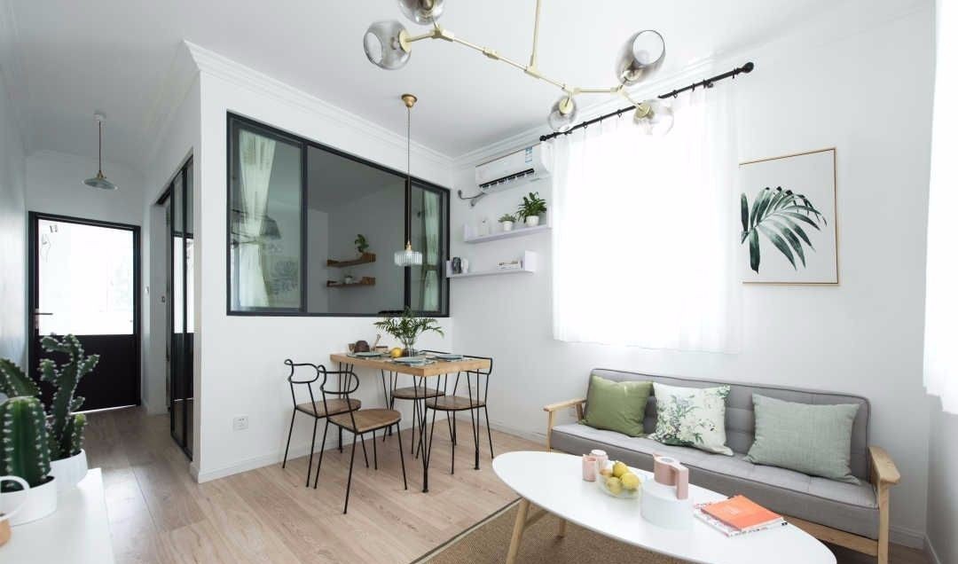 原先是一室户,业主想改造成两室,利用客餐厅空间,中间隔加出一个房间,考虑到通透,全部用落地窗,和开窗做了隔墙