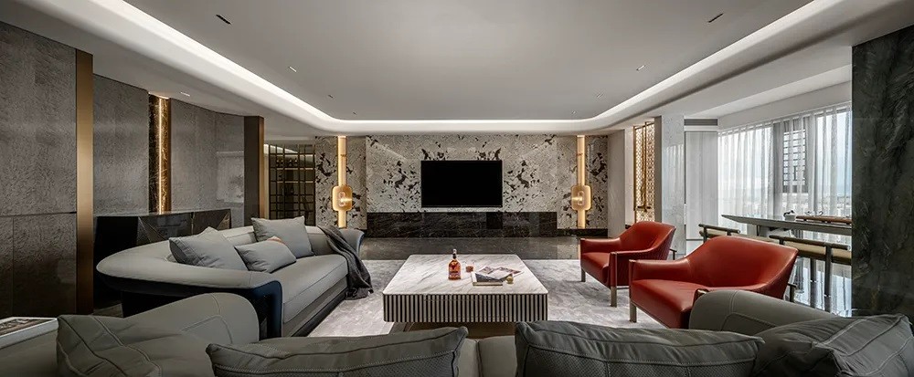客厅递进层次清晰,一体化设计结合平层视野,给内心带来震撼。每一处的格调,让生活韵味十足。