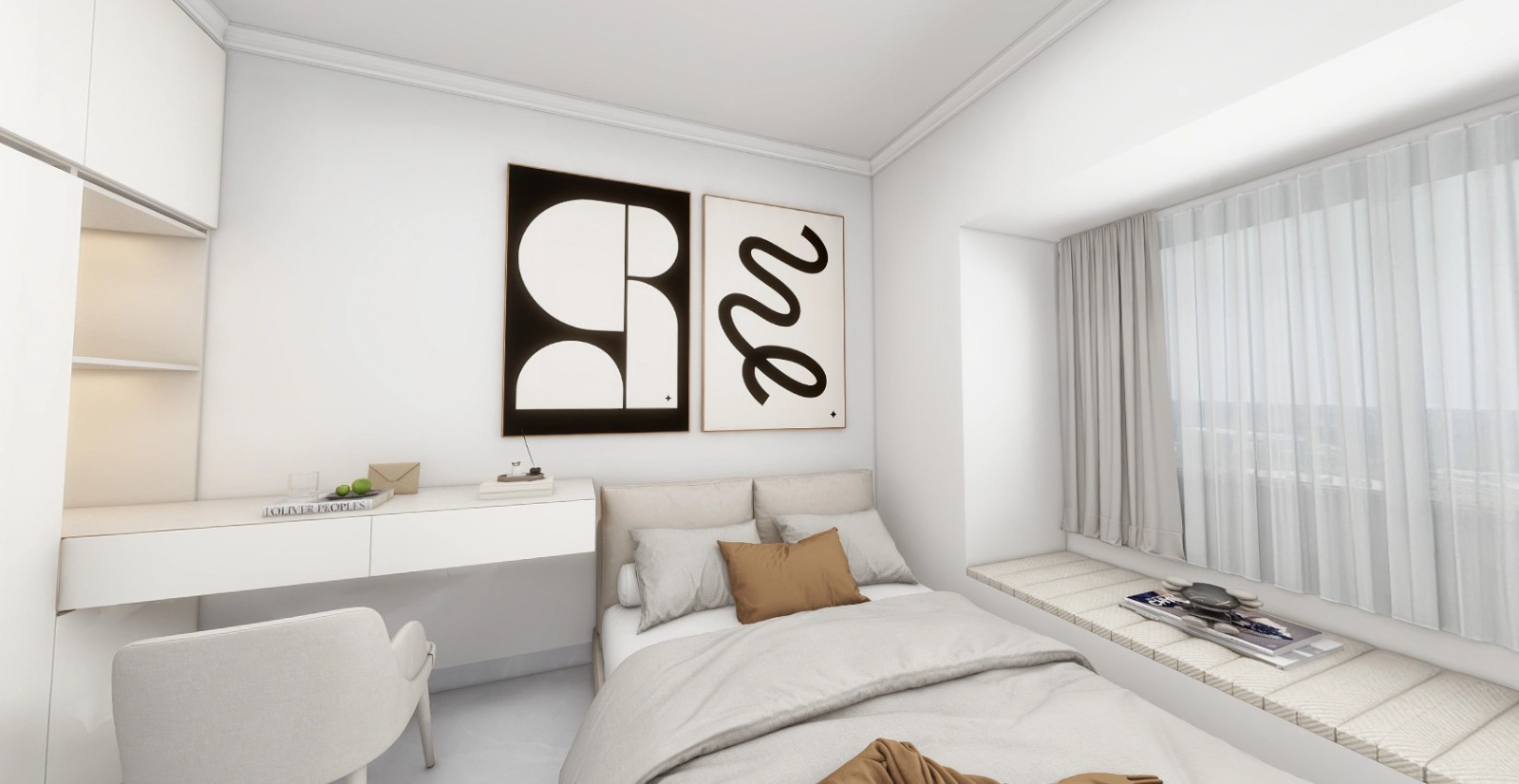 奶白风格加以挂画和软装撞色突显简约不简单。