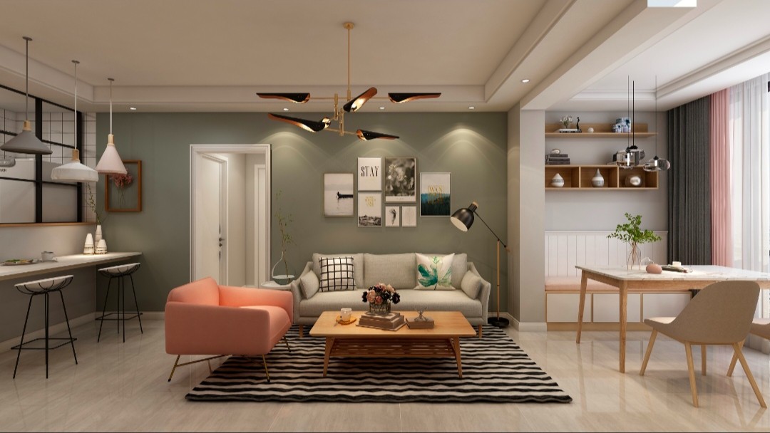 客厅以浅色系为主,整体色彩搭配温馨舒适,清新自然。