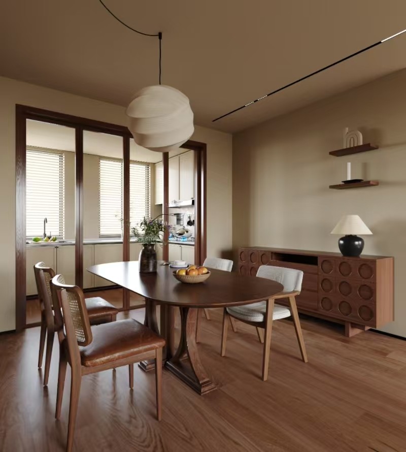整体布局奶油风搭配木艺