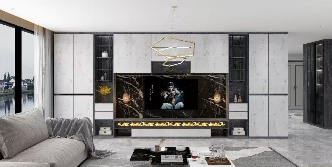岩板上墙与瓷砖,与鱼缸相结合,让空间更加分明