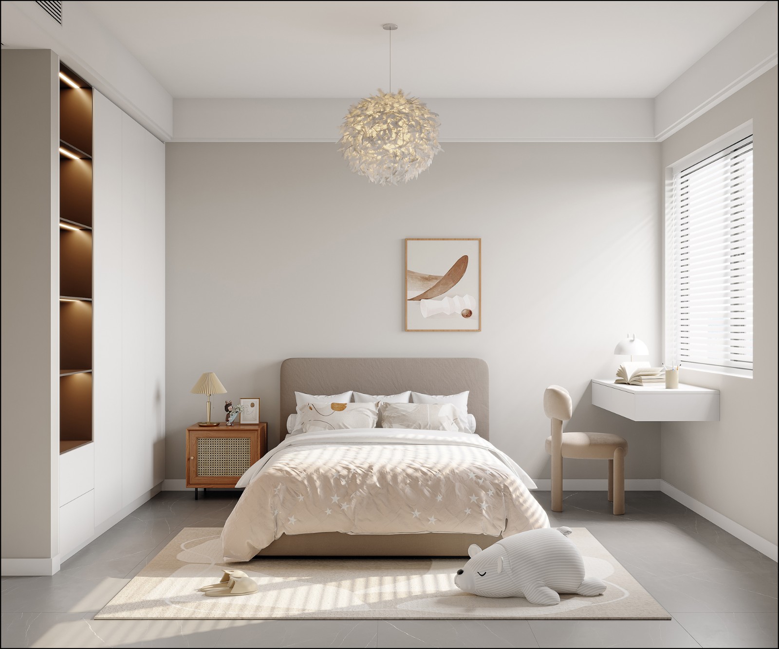 书房是女主人的空间,既要美,也要整洁,而且要温馨,所以同样在硬装上线条简洁,定制部分中肯,软装出氛围。