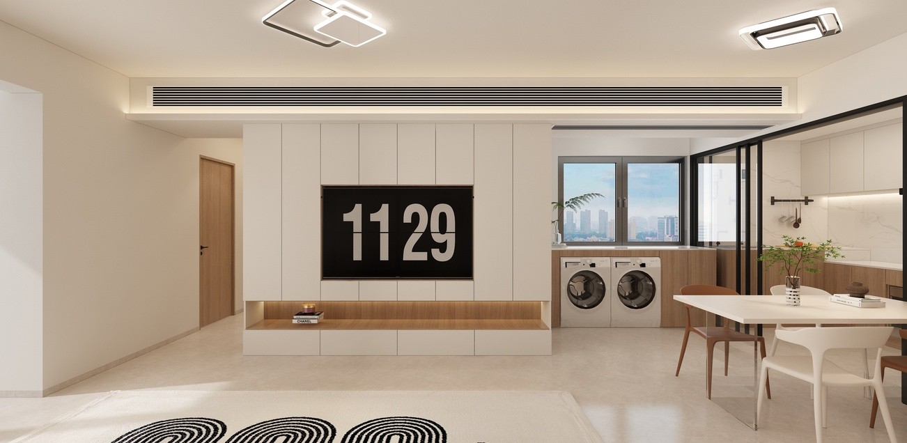 客厅做满墙电视柜,满足收纳需求。
