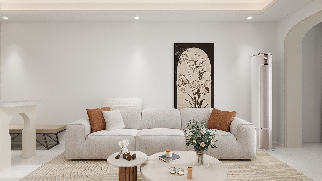 主题为简洁实用型,做白色为主体,黑色、黄色等为点缀。做了一圈吊顶进行氛围打灯