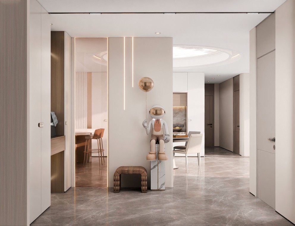 设计亮点 1、去客厅化:将传统客厅的功能与空间进行重新整合,打造出一个更加灵活、舒适、实用的生活空间。 孩子在成长阶段,电视并不是必需品,他们更需要的是玩乐、学习和陪伴的空间,将传统客厅功能重新整合,打造去客厅化空间,更符合现阶段孩子的需求哦~ 2、鞋物收纳:满足日常鞋物收纳,同时考虑婴幼儿鞋物收纳专区。 小孩子的鞋子比较小,如果没有提前做好规划,容易造成空间浪费,不妨加上可活动的分隔板,孩子长大