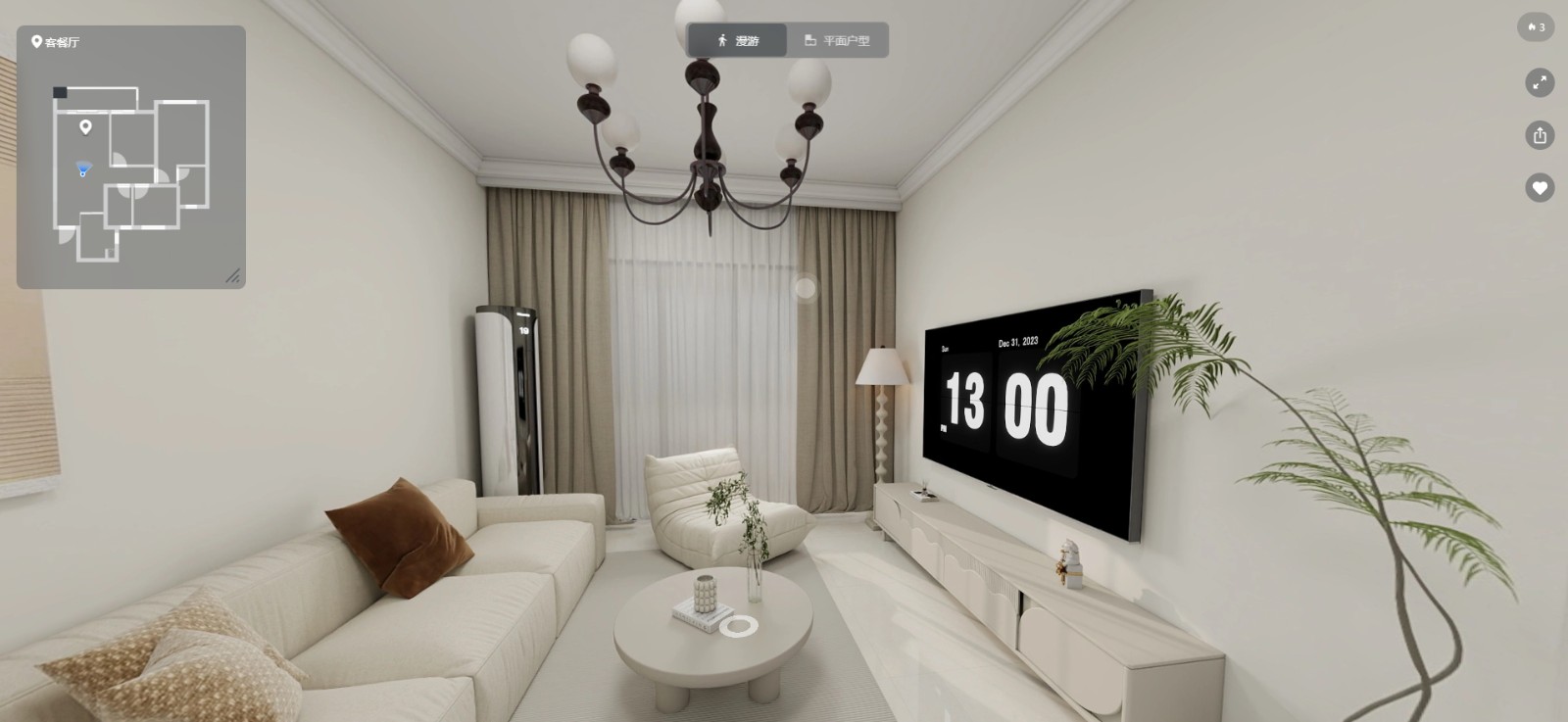 阳台半封闭,开间小不做电视背景墙。浅色搭配空间显大
