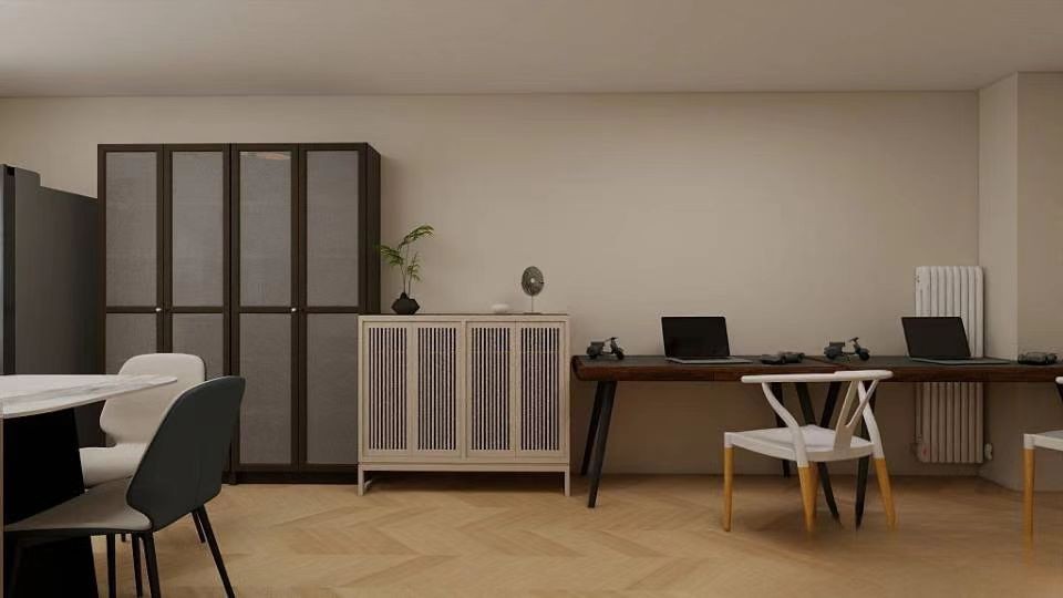 整面墙体布局高低分明,办公,储物,层次分明。