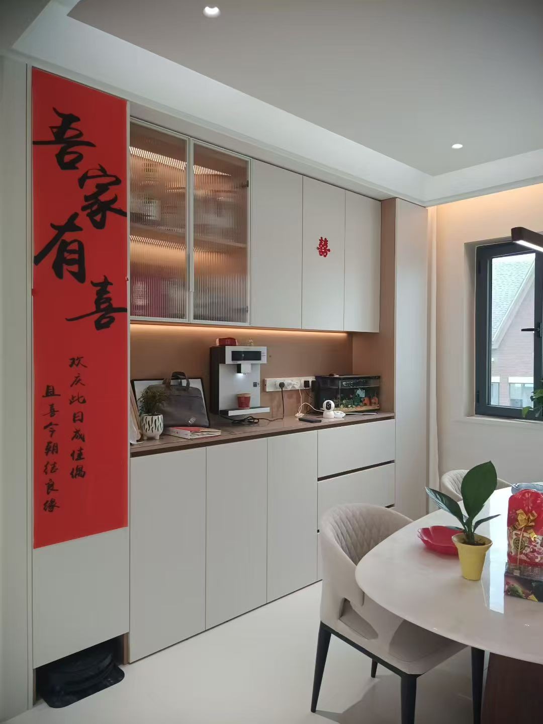 餐厅酒柜搭配玻璃门、灯带,增加氛围感