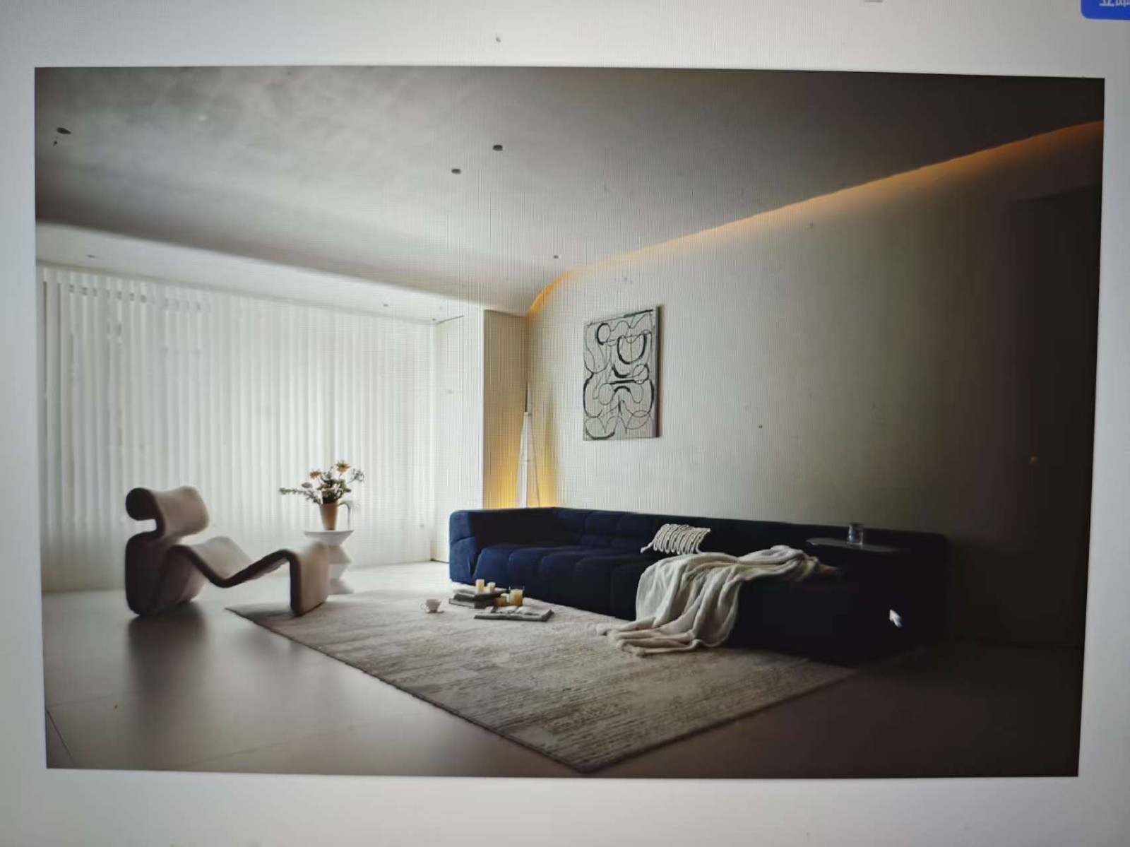 设计这个空间时,先打破了原有四室两厅布局,改成两室两厅让空间变大。变大后没加很多装饰,而是尽量留白,去掉能省的物件。还设低矮座具、铺地毯、去掉茶几,让大家自然坐地上。平面布局变空旷后,又从立面挖掘空间。因屋顶梁柱多又想追求空间感,不做平吊顶,而是用弧面造型包裹梁柱,减弱断裂感,侧面加线性光源,让视线随结构变化,带来自由的空间体验。