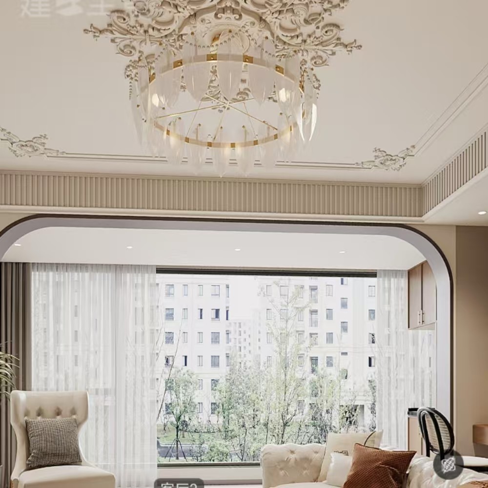 复古美式客厅,深棕实木地板衬着护墙板,雕花石膏线勾出典雅轮廓。皮质沙发配条纹地毯,铜制吊灯洒暖光。朝南落地窗挂格纹帘,与北窗形成对流。客餐厅相连,壁炉作端景,满是温润时光感。