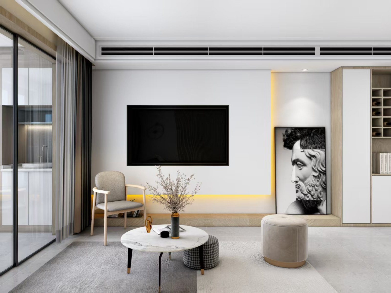 整体以白色和浅木色为主色调。体空间明亮、整洁、通透。