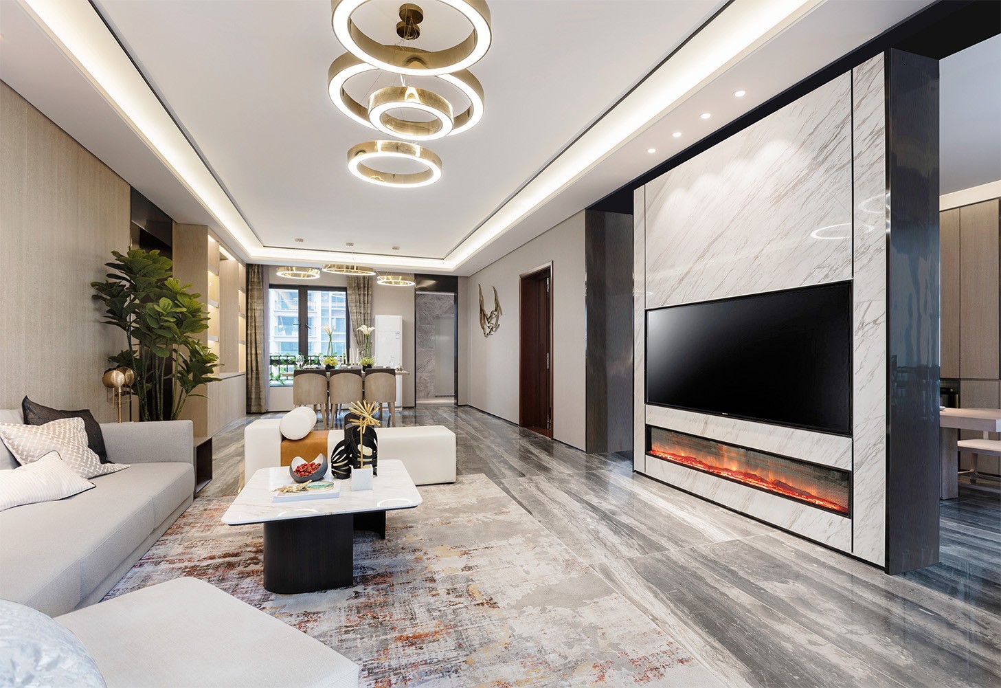 客厅采用白色灯带和白色的主灯,让整个客厅显的更亮更通透