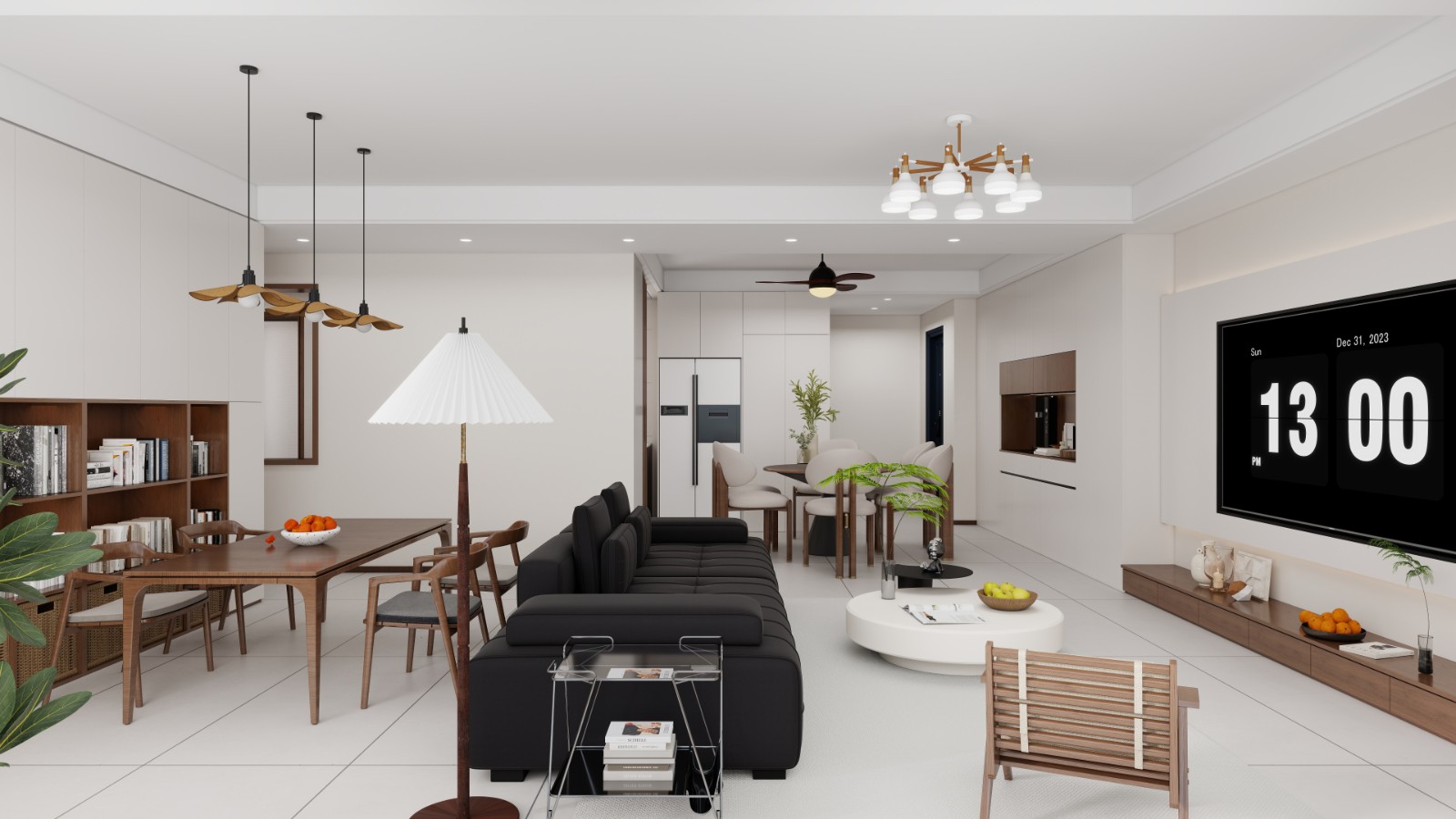 开放式布局串联餐客空间,搭配造型灯具、绿植与木质家具,营造温馨自然、通透且具互动性的生活场景。
