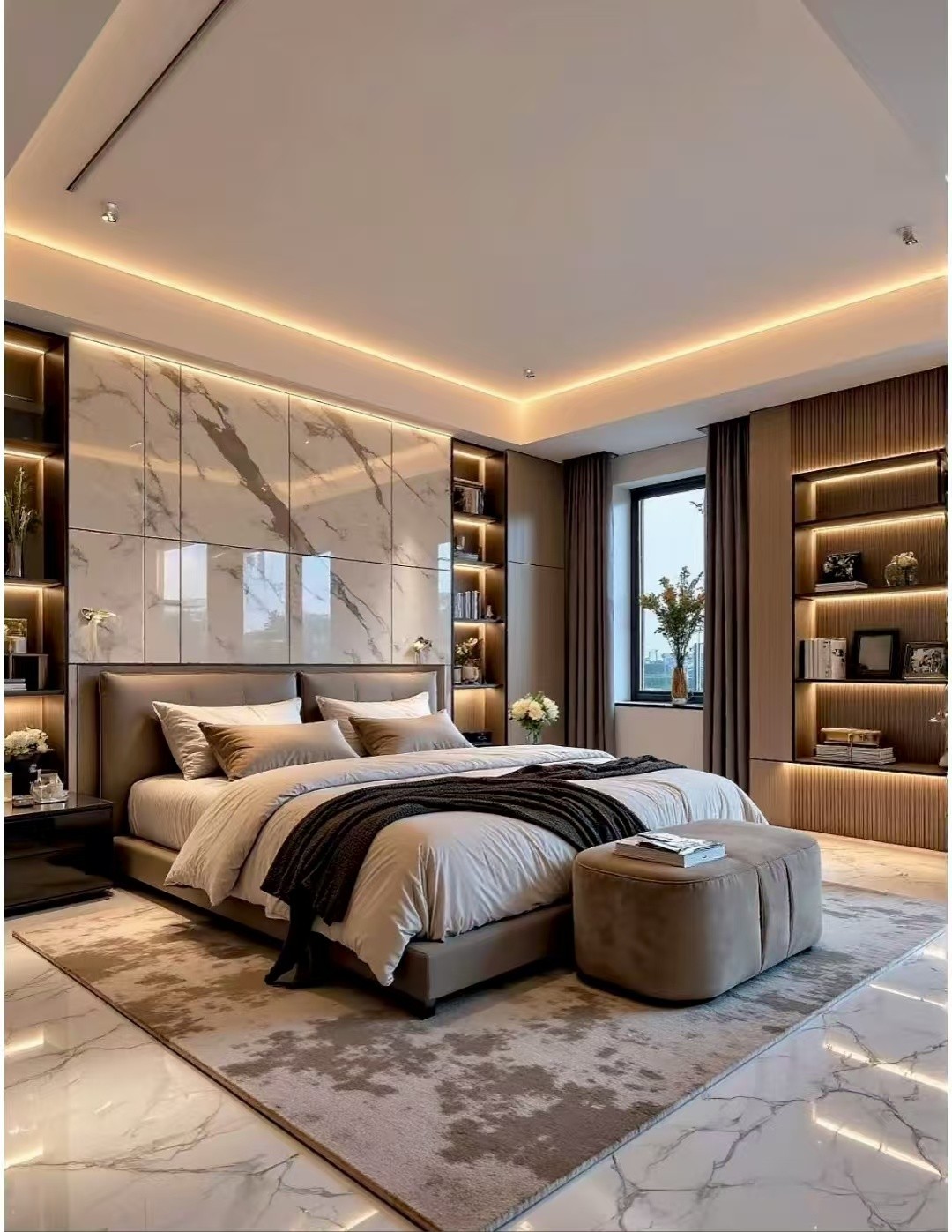 地面通铺灰色瓷砖,超有质感。整体空间过渡自然衔接。